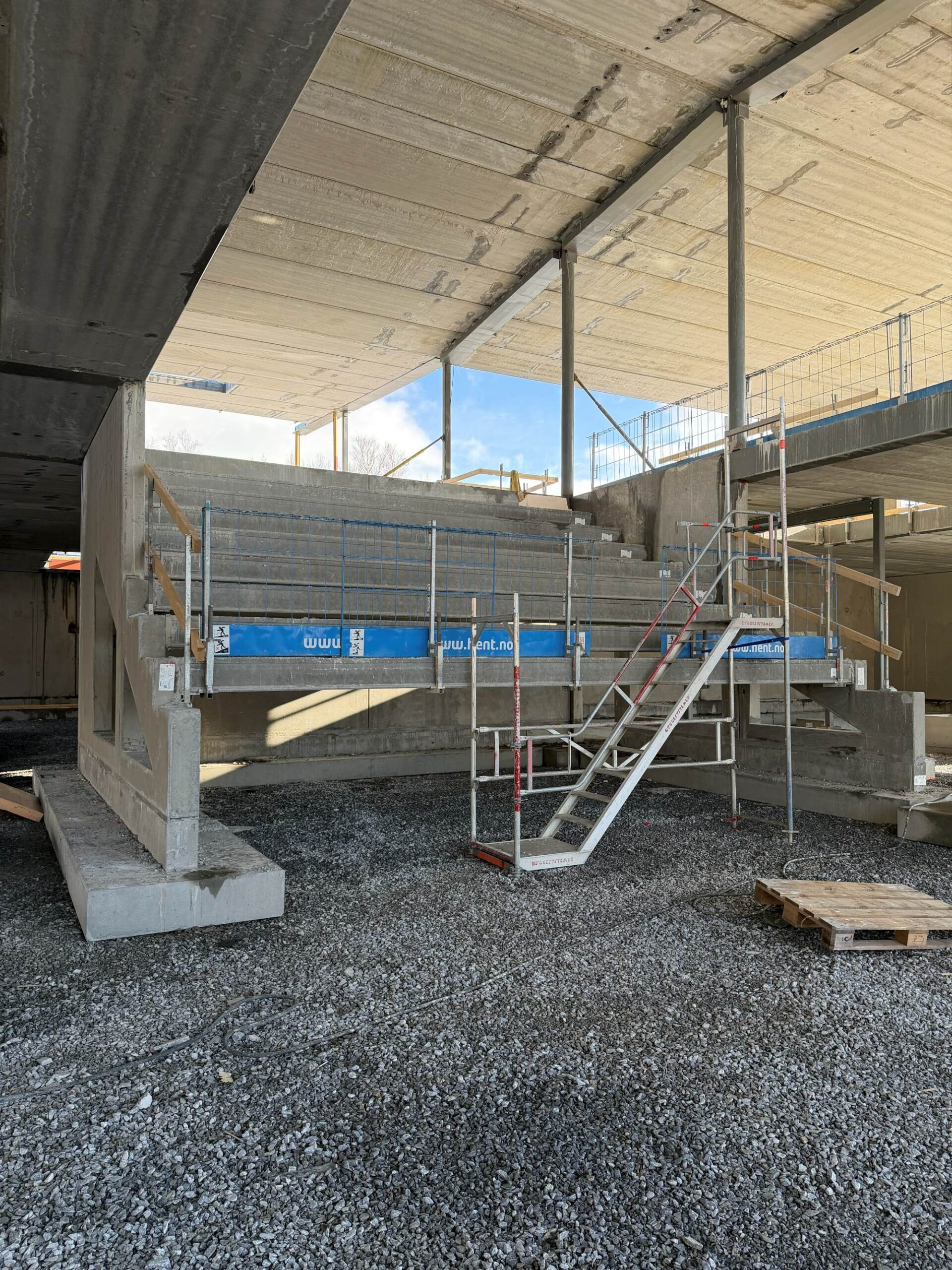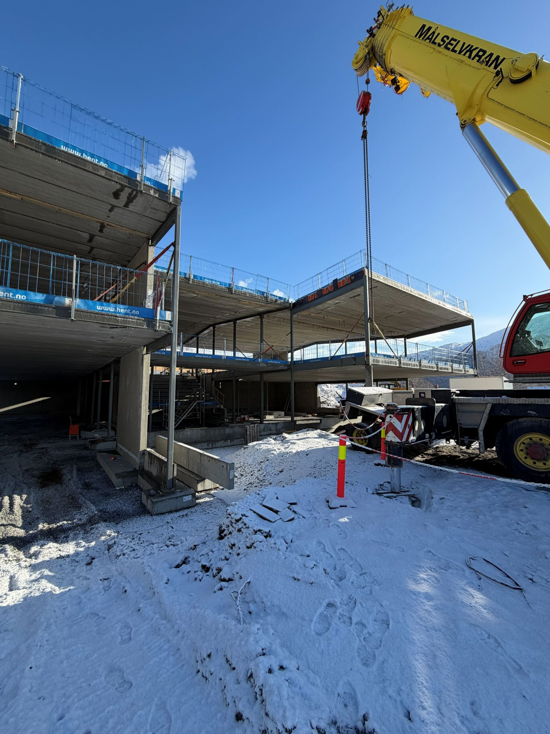 I den kommende perioden vil det pågå omfattende anleggstrafikk langs Hovedveien i forbindelse med innkjøring av masser og leveranser av ytterveggselementer. Naboer og trafikanter bes vise aktsomhet. Det vil pågå noe arbeid til og med onsdag i uke 14.